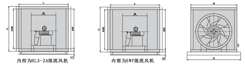 風機選用HL3- 2A或SWF系列風機,性能參數(shù)依照HL3-2A或SWF系列風機中同型號的性能參數(shù)。